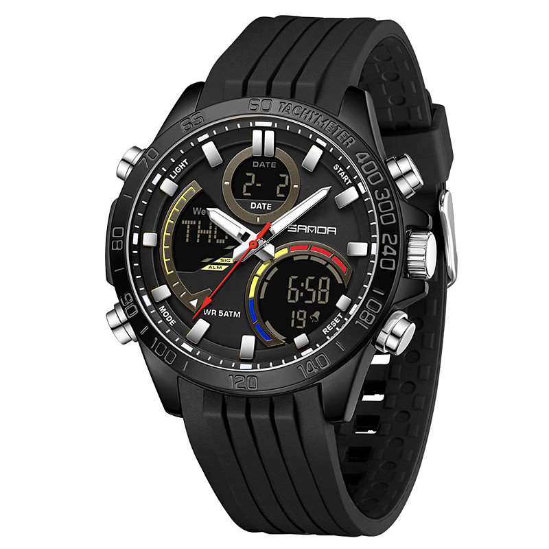 SANDA Men Digital Watch Large Dial Outdoor Sports Casual Luminous Stopwatch Alarm Clock Countdown Silicone Watch