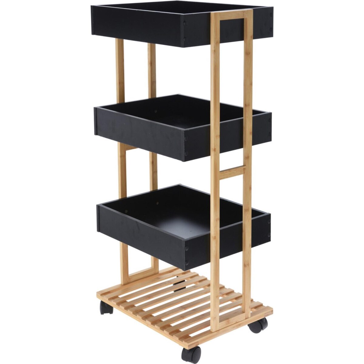 WellHome - Bambus-Aufbewahrungswagen mit 1 Regal und 3 Tabletts in Schwarz 40x30x87,5cm