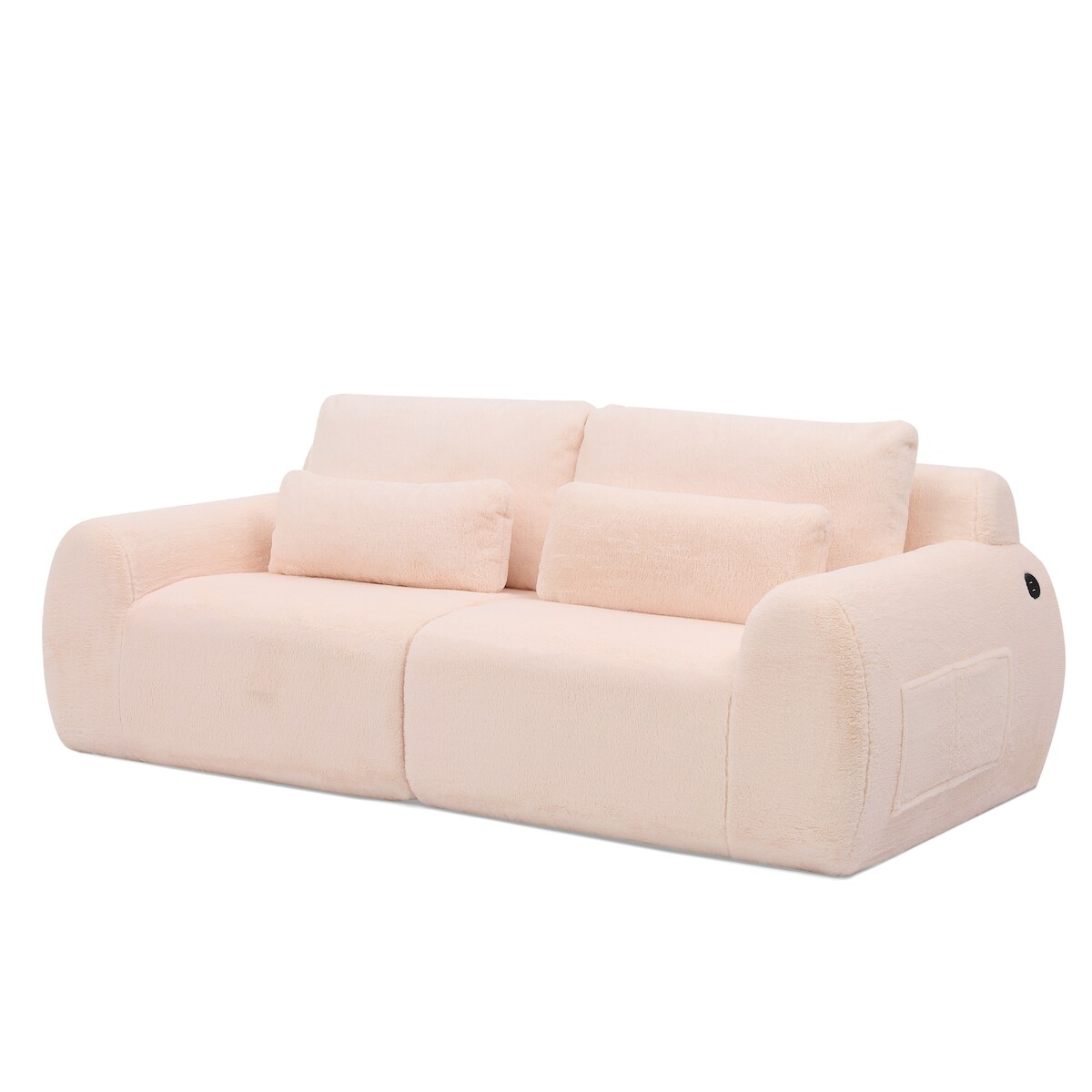 Merax 2-Sitzer Sofa mit USB-Ladeanschluss & Seitentasche, hochfedernder Schaumstoff, Samt, Rosa