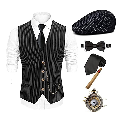 mens 1920s gangster outfit gilet con accessori set 5 pezzi retro vintage ruggenti anni '20 festa a tema costume cosplay cappello panama barba spilla canna