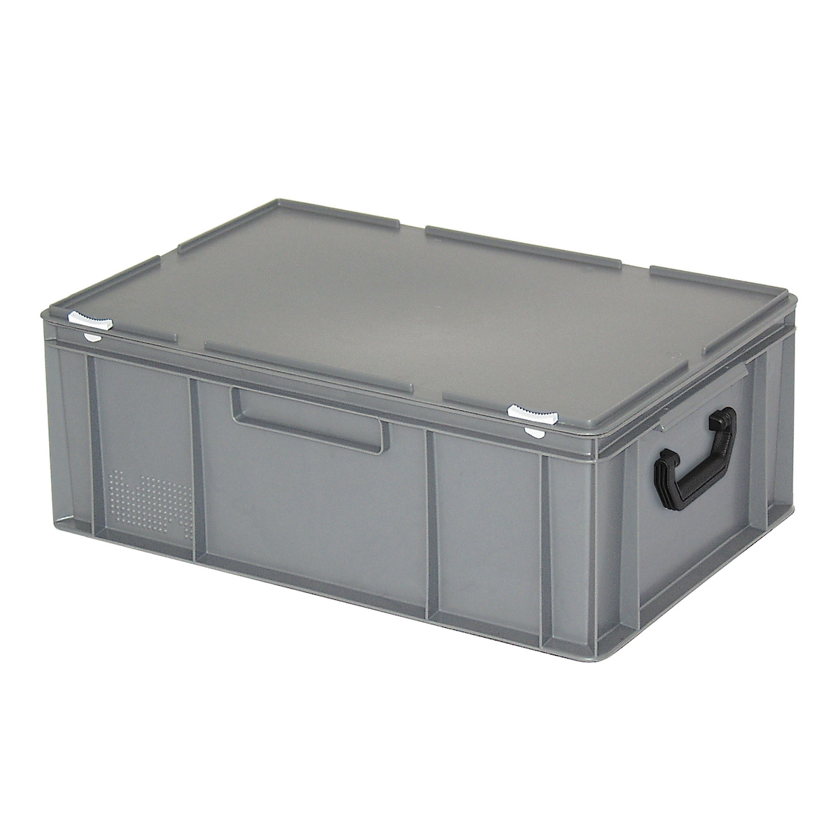 BRB Kunststoffkoffer mit Scharnierdeckel, grau, LxBxH 600 x 400 x 230 mm, lebensmittelecht, Industriequalität