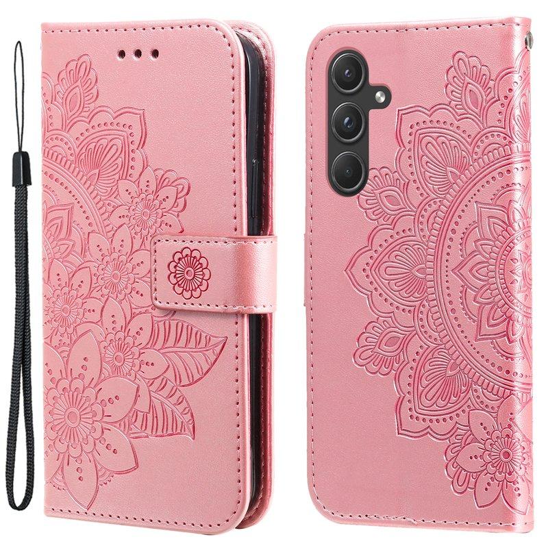 Samsung Galaxy A55 5G Plånboksfodral Blommönster Konstläder Ställ - Rosa