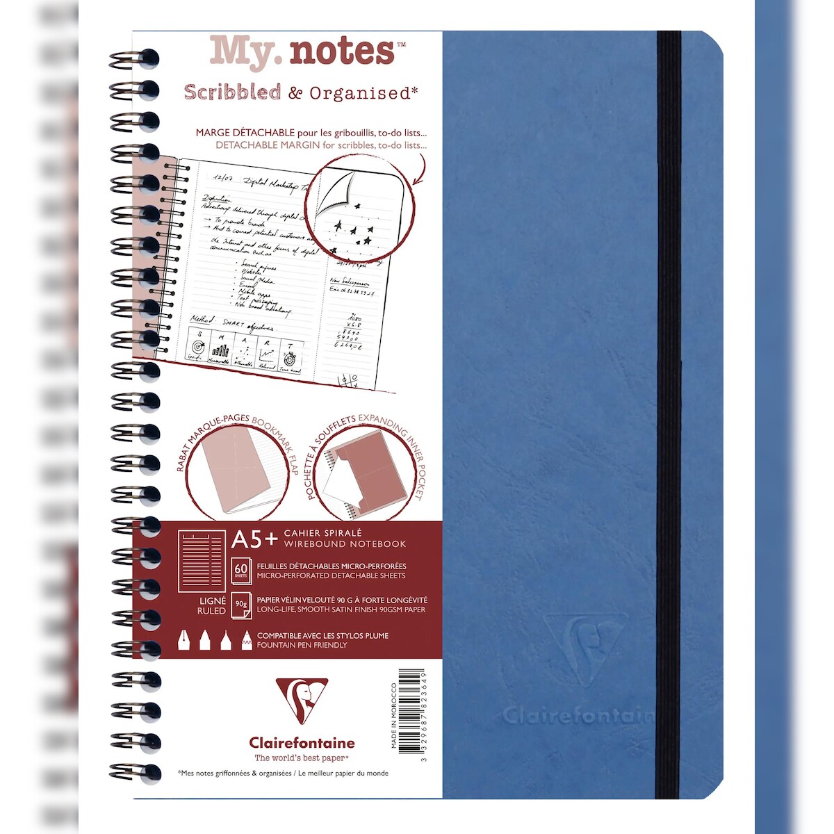 Clairefontaine 5x My.Notes Age Bag, Spiralheft A5+, 60 Blatt 90g, liniert mit Kopfleiste, abtrennbar, mikroperforiert - Blau 782364C