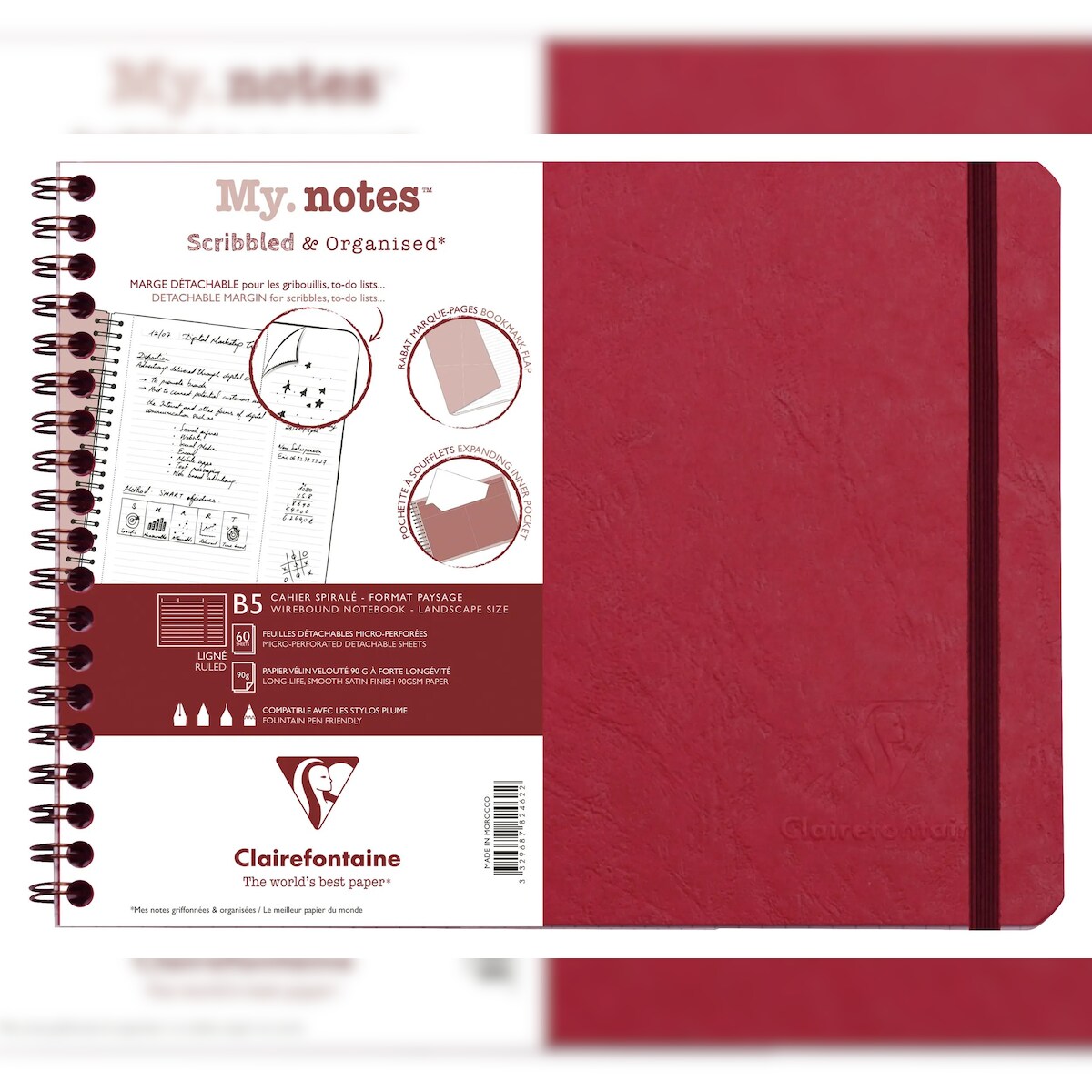 Clairefontaine 5x My.Notes Age Bag, Spiralheft B5 Querformat, 60 Blatt 90g, liniert mit Kopfleiste, abtrennbar, mikroperforiert - Rot 782462C