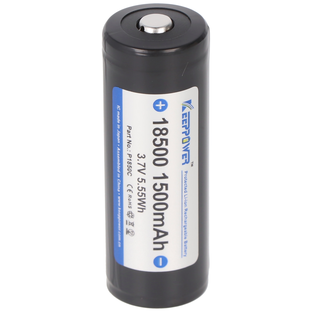 Keeppower 18500 Li-Ion Akku 1500mAh, 3,7V Li-Ion-Akku geschützt ca. 52,8x18,5mm Abmessungen