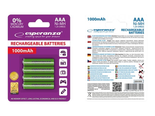 Esperanza - Akku 4 x AAA - NiMH - 1000 mAh - vihreä