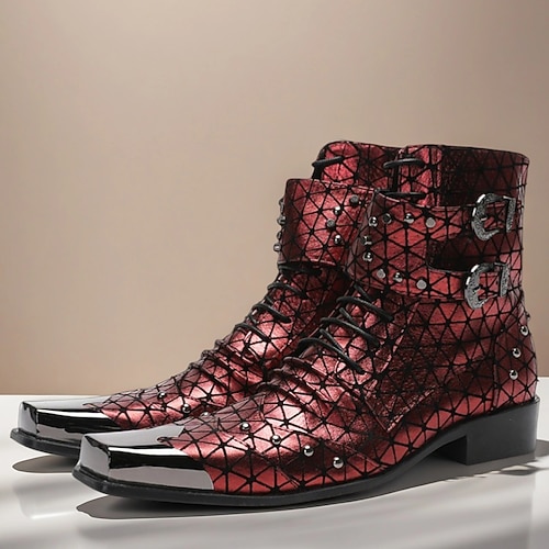 Per uomo Stivali Stivali da biker Retrò Ginnastica Camminata Pelle Pelle Pieno Fiore Italiana Confortevole Antiscivolo Caldo Stivaletti Cerniera Fibbia Vinaccia Autunno Inverno