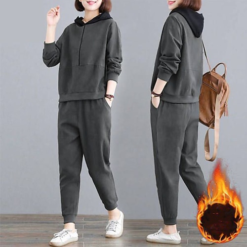Per donna Felpe con cappuccio da salotto Tute in pile con tasca Tinta unita Completo Abbigliamento Autunno Inverno Nero Rosso Palestra All'aperto Corsa Antivento Caldo Manica Lunga Sport
