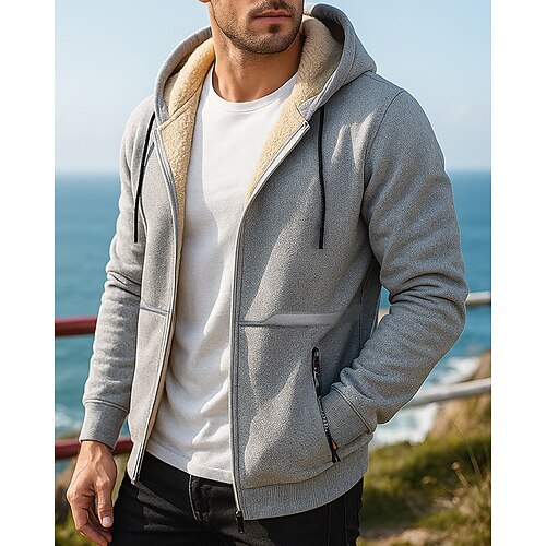 Per uomo Felpa in pile Lounge Top Molto spesso Manica Lunga Top Athleisure Tinta unita Antivento Caldo Palestra Escursionismo Allenamento abbigliamento sportivo Abbigliamento sportivo Nero Bianco