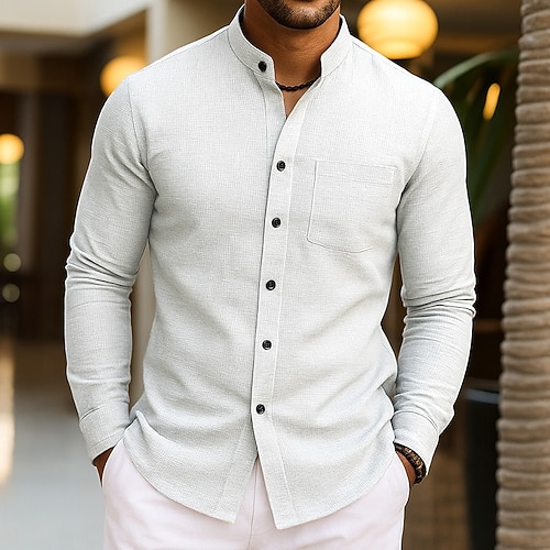 Per uomo Camicia Camicia a nido d'ape Camicia casual Camicia con colletto alla coreana Camicia con Bottoni Nero Bianco Vino Verde Kaki Manica Lunga Semplice Collo alla coreana Quotidiano Uscire