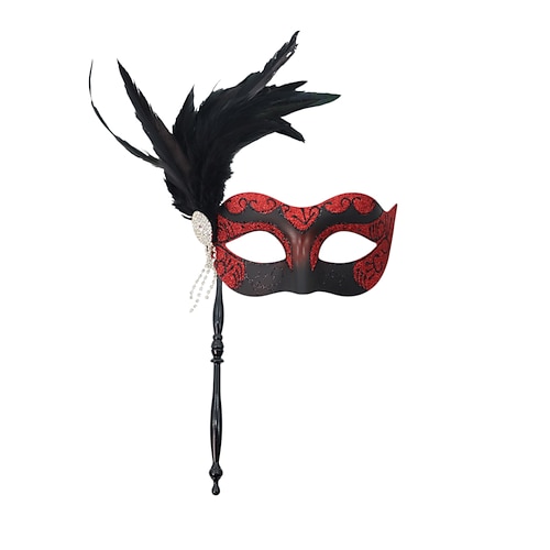 Maschera da ballo in piuma verde da donna con dettagli in strass e perle, da tenere in mano, per feste di Natale e balli del Grande Gatsby carnevale