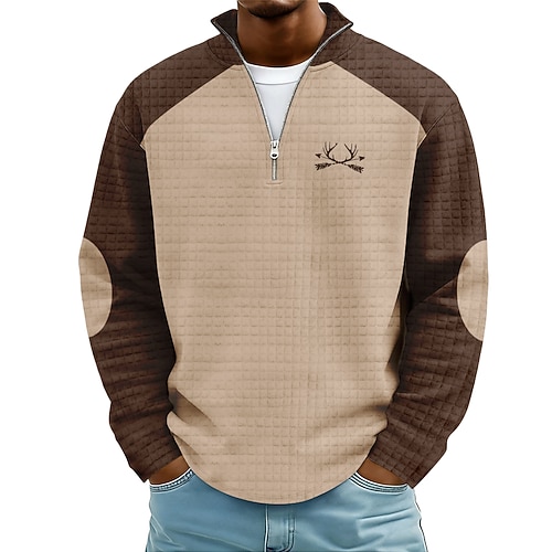 Per uomo Cervo Nido d'ape Felpa Etnico Casual Vintage Retrò Da caccia Collo alla coreana Zip a un quarto All'aperto Abbigliamento casual alla moda Viaggio Verde Cachi Grigio Con zip Autunno Inverno
