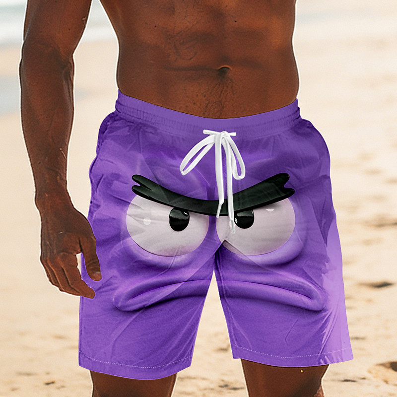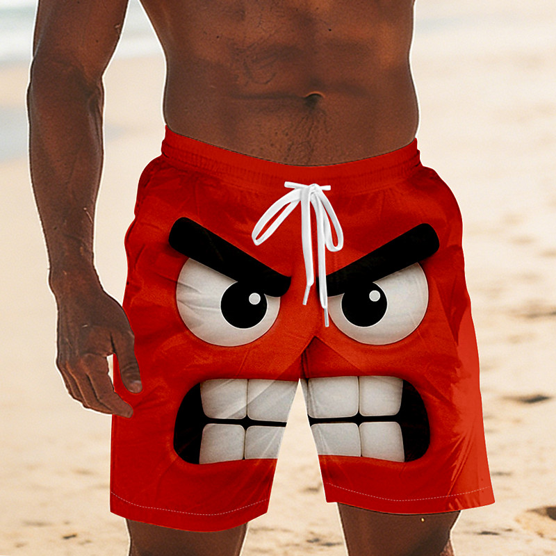 Men's Optical Illusion 3D Cartoon Angry Face Swim Trunks Swim Shorts Board Shorts Mid Waist Hawaiian Funny Beach Vacation Wear Side Pockets Mesh Lining Elastic Drawstring Waist Designer Clothing