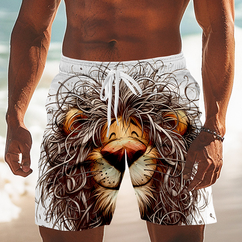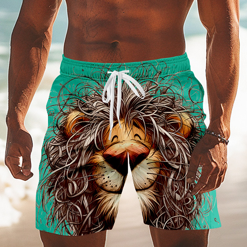 Men's Cartoon Lion Funny Swim Trunks Swim Shorts Board Shorts Mid Waist Hawaiian Beach Vacation Wear Side Pockets Mesh Lining Elastic Drawstring Waist Designer Clothing Apparel