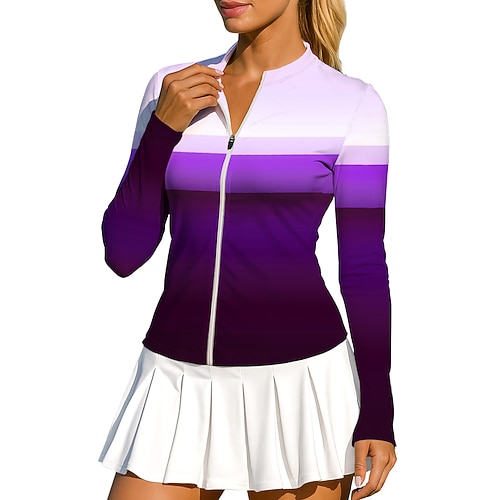 Per donna Geometrico Blocco di colori Sfumatura A righe Top Maglietta sportiva Maglia da tennis Maglietta da tennis Manica Lunga Cerniera Floreale UPF50 Resistente ai Raggi UV Alta elasticit