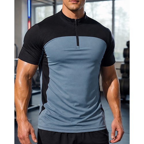 Per uomo T-shirt da corsa Maglia a compressione Maglia atletica Sport in alto Patchwork Cerniera a un quarto Manica Corta Top Estate Blocco di colori Asciugatura Rapida Traspirante Allenamento in