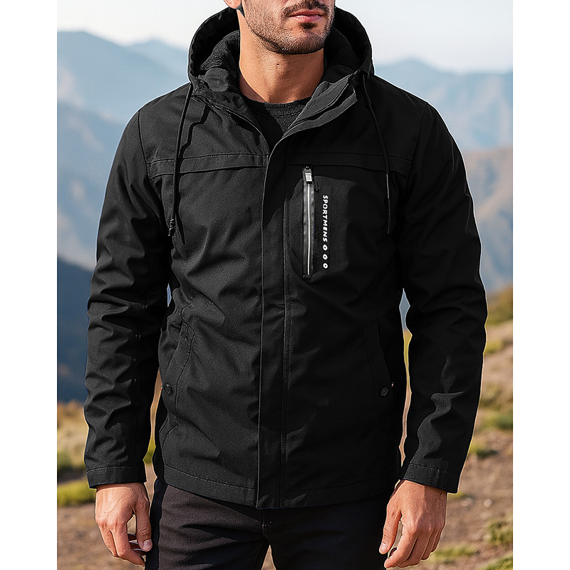 Men's Windbreaker Hiking Jacket Fleece Jacket Outdoor Waterproof Windproof Lightweight Hiking Outfits Hiking Clothes Spring Autumn / Fall Top Camping / Hiking / Caving Running Solid Color Black Dark