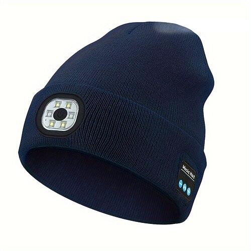 Kabellose Bluetooth-Musik-Strickmütze mit LED-Beleuchtung für den Außenbereich, leuchtende Weihnachtsmütze mit integrierten Kopfhörern, USB-wiederaufladbar, 1,5–3 W Netzteil, Batterie-Push-B-Funktion