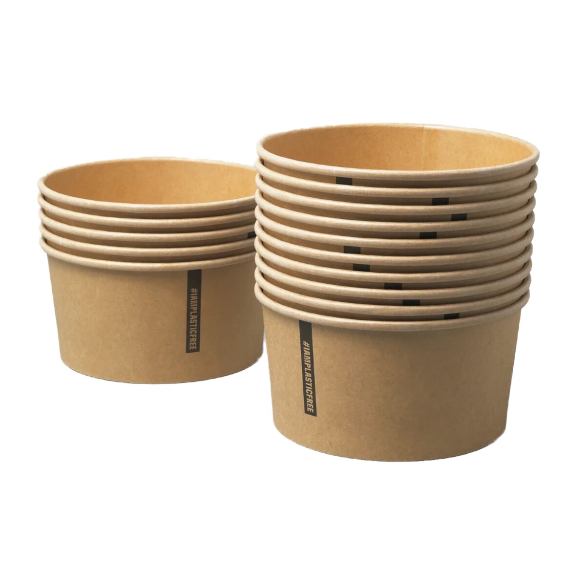 #IAMPLASTICFREE 300 Stück Salatschalen 1.000ml Kraftpapier braun - Pappschale, Einwegschale für Bowls, Salate, biologisch abbaubar, hitzeresistent