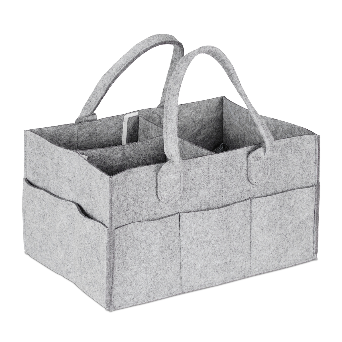 Relaxdays Baby Windel Caddy, 11 Fächer, entnehmbare Trenner, tragbare Filztasche, Auto & Wickeltisch Organizer, hellgrau