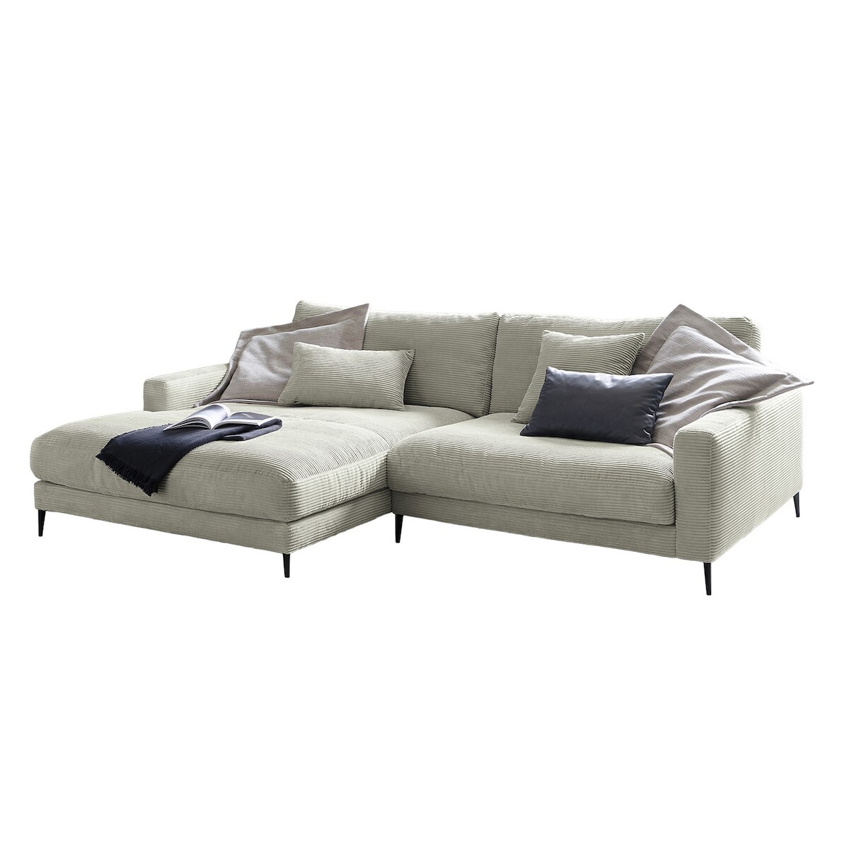 KAWOLA Ecksofa CARA Sofa Recamiere links Cord steingrau