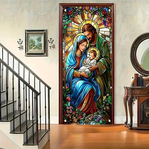 Compleanno Poster Copertura della porta Banner per esterni Vetro colorato Chiesa Carino Medievale 3D Da serata Dormitorio Stanza per adolescenti Dormitorio universitario Ragazzi Man Cave Frat Bedroom