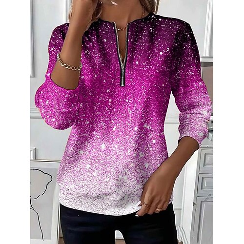 Felpa con Zip per Donna Grafica Moda Casual a Maniche Lunghe Top Regolari Collo Rotondo Quotidiano Streetwear Stampa con Zip Blu Rosa Rosso Arancio Autunno Inverno