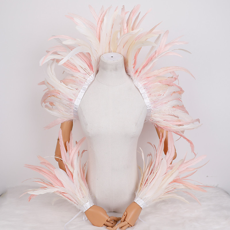 Rio Carnival Samba Accessories Carnival Red and Yellow Feather Costume Set Shoulder Cape Arm Cuffs for Mardi Gras, Dance Party Wear Brazil Festival Performance Costume