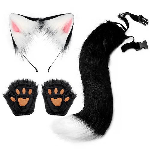 Set di fascia per capelli con orecchie di gatto e guanti con zampe di gatto fatti a mano: accessori cosplay realistici, orecchie di animali, guanti senza dita per Halloween, feste e spettacoli