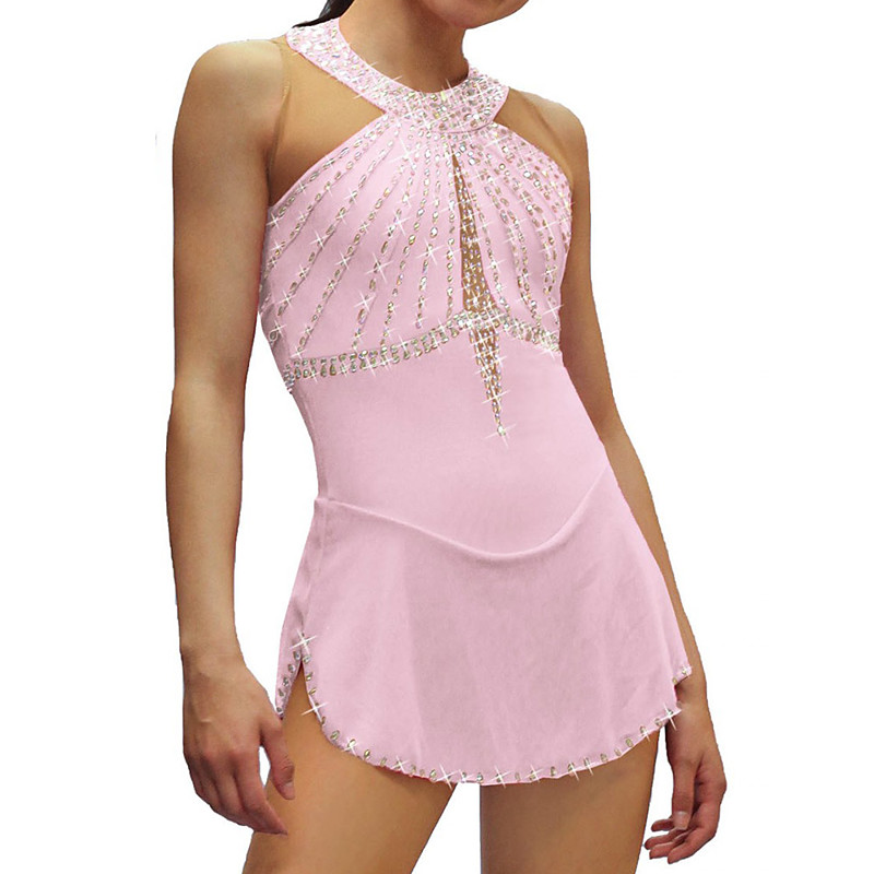 Figure Skating Dress Women's Girls' Ice Skating Dress Black White Pink Open Back Mesh Spandex High Elasticity Training Competition Skating Wear Crystal / Rhinestone Sleeveless Ice Skating Figure