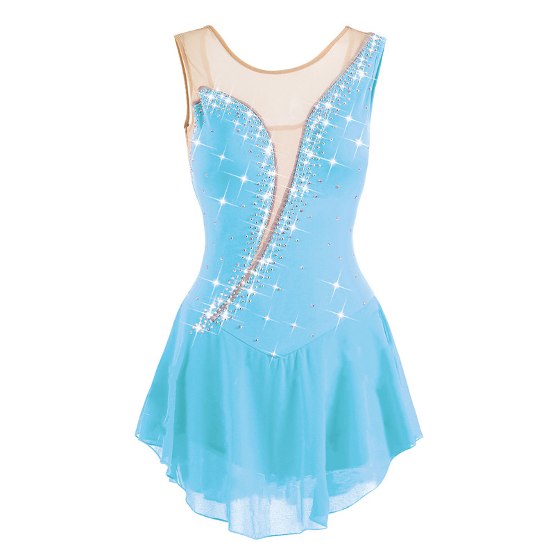 Figure Skating Dress Women's Girls' Ice Skating Dress Sky Blue Patchwork Thumbhole Mesh Spandex Stretchy Training Practice Professional Skating Wear Thermal Warm Crystal / Rhinestone Long Sleeve Ice
