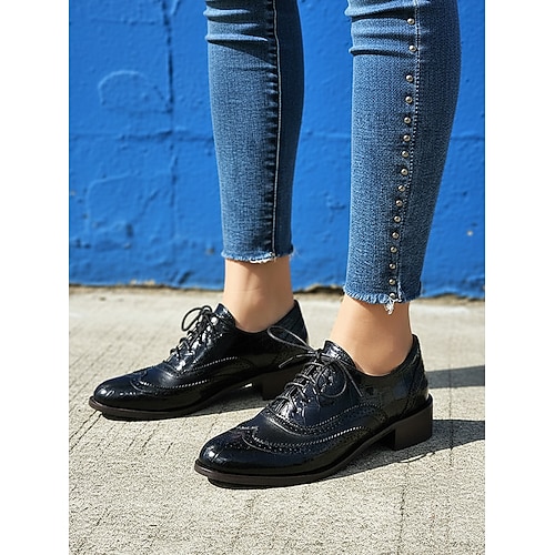 Damen-Oxford-Pumps im Vintage-Stil – Brogue-Schnürschuhe mit dickem Absatz für die Arbeit, das Büro und die Freizeit