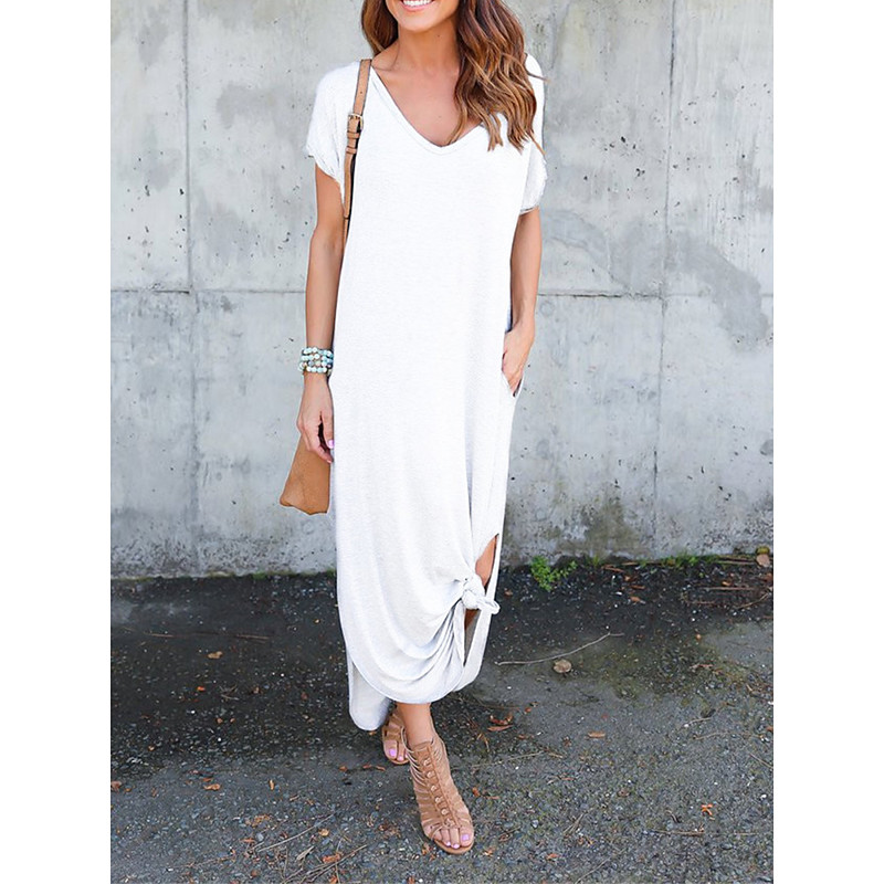Women's Casual Dress Long Dress Maxi Dress Cotton Pocket Split Date Maxi Basic V Neck Short Sleeve Black White Pink Color