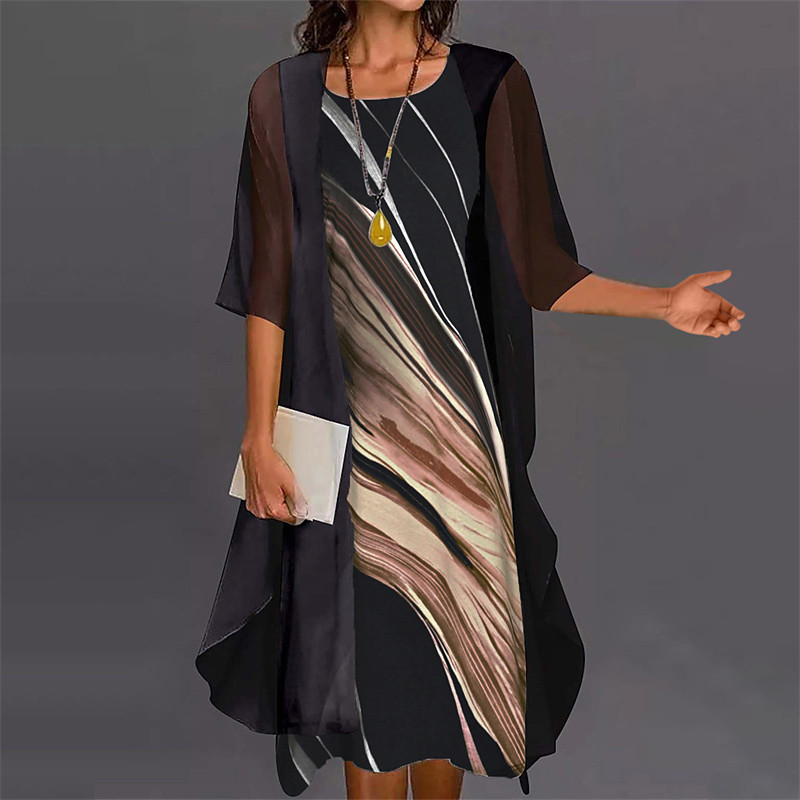 Women's Fashion Streetwear Skirt Sets Half Sleeve Crew Neck Gradient Print Daily Wear Date Black Blue Beige Spring Regular Fit