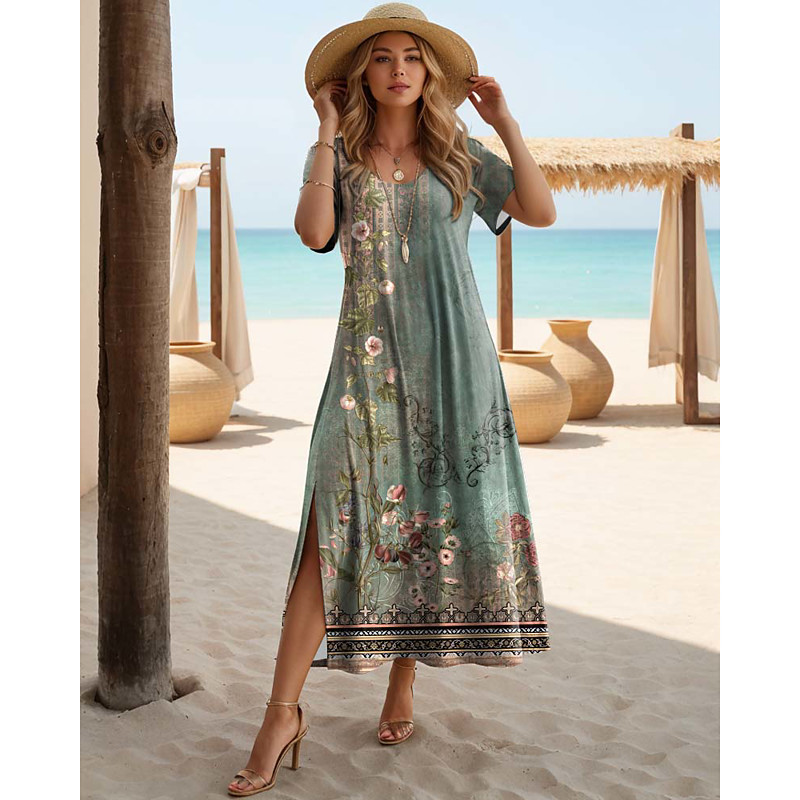 Women's Maxi Dress Casual Dress Shift Dress Stylish Casual Vacation Daily Date Loose Fit Floral Short Sleeve V Neck Pink Blue Summer Spring
