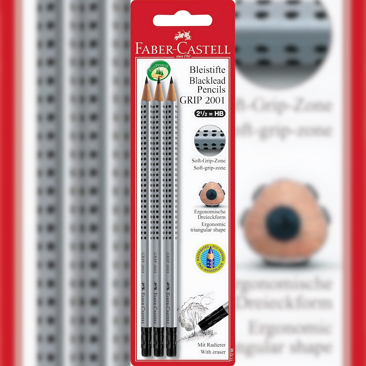 Faber Castell Bleistift Grip 2001 mit Gummitip HB silber 3er