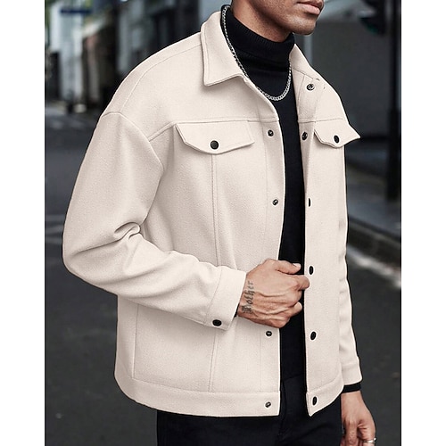 Herren Leichte Jacke Cargo-Jacke Freizeitjacke Urlaub Täglich Warm Tasche Herbst Winter Einfach Mode Klassisch Revers Regulär Schwarz Gelb Hellgrau Aprikose Jacken