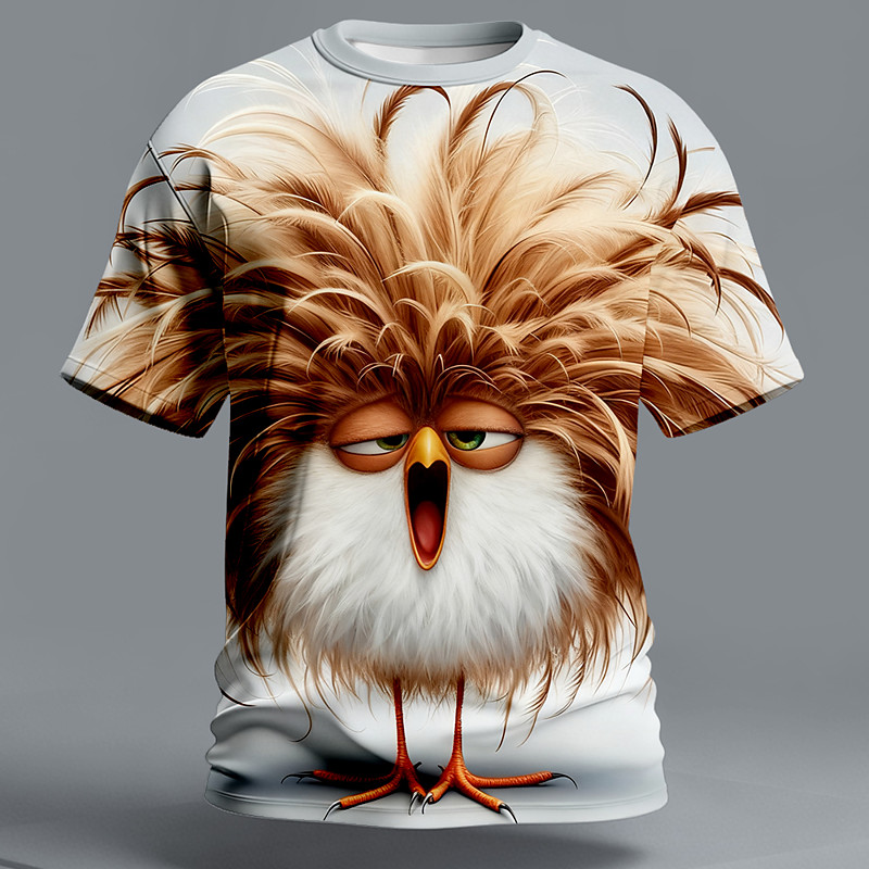 Mens 3D Funny Crazy Bird T Shirt Big Eyes Ostrich Graphic Tees Messy Feathers Print Short Sleeve Summer Casual Tops Clothing Apparel S M L XL XXL XXXL