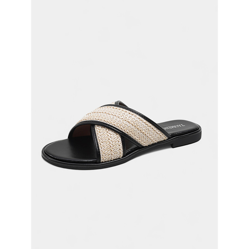 Women's Woven Cross-Strap Flat Sandals – Boho Casual Slides for Summer Strolls Romantic Daytime Dates