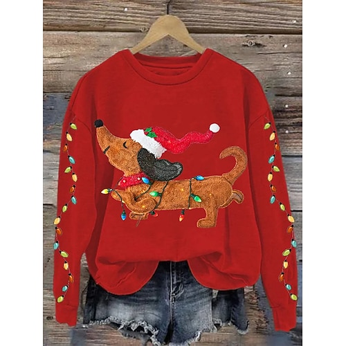 Felpa Natalizia per Donne con Cani Grafica Animale Casual Maniche Lunghe Collo a Giro Collo Rotondo Regolare Top Casa Lavoro Abbigliamento Da Strada Nera Rossa Verde Primavera Inverno