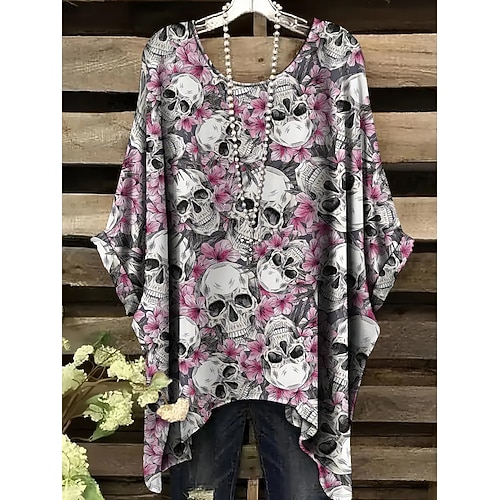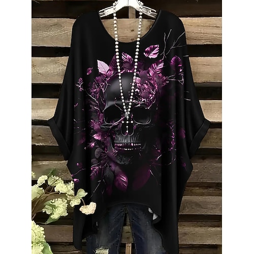 Blusa da donna grafica con teschio vintage quotidiana casual maniche corte a palloncino collo a giro tops lunghi quotidiani ferie nera bianca rosa rossa viola primavera autunno