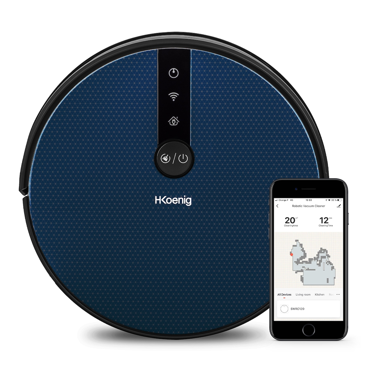 H.Koenig SWRC120 Saugroboter WaterMop Gyro+ Hohe Leistung mit WiFi, Google Home und Alexa, Wasserkapazität 350 ml, 100 min Autonomie, 4 Programme