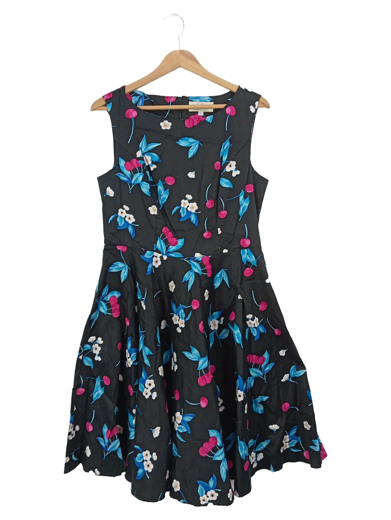 GRACE KARIN Kleid L Schwarz Blumenmuster Vintage Midi