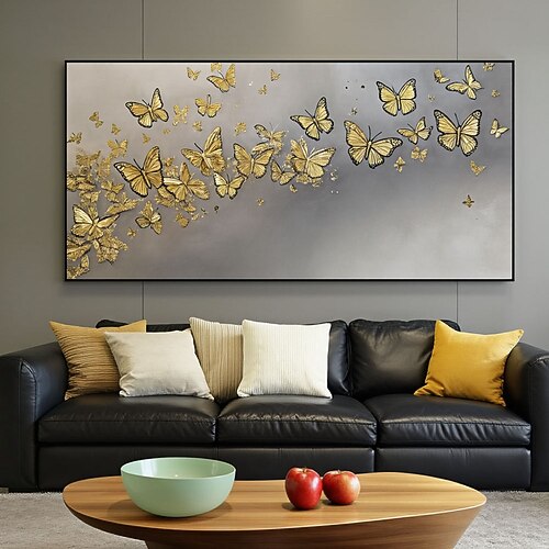 Handgefertigtes abstraktes Wandbild mit goldenen Schmetterlingen, fliegende Schmetterlinge, Ölgemälde, 3D-Schmetterling, modernes abstraktes Tierbild für die Heimdekoration