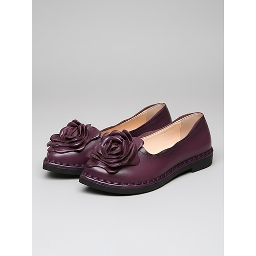 Gelbe Damen-Ballerinas aus echtem Leder – bequeme Slipper mit breiter Passform, 3D-Blumenapplikation, handgefertigte Retro-Schuhe für die Reise Freizeitkleidung