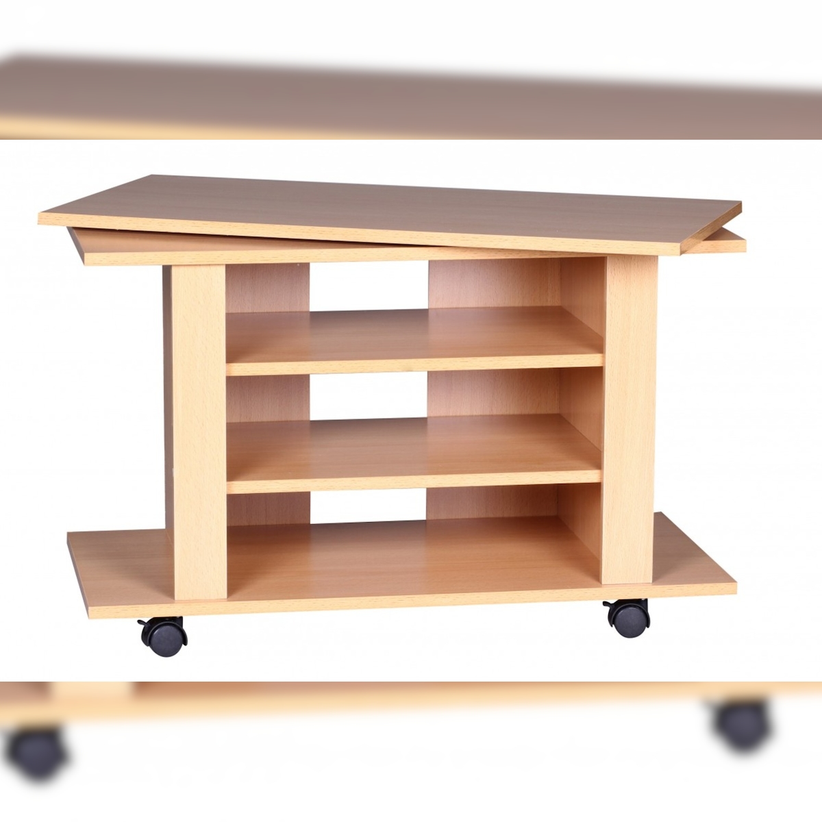 TV HiFi Bank in Buchenholz, modernes Design, drehbar und rollbar, mit 3 Ebenen, perfekt für Wohnbereiche. 75x38x51 cm | Kadima Design