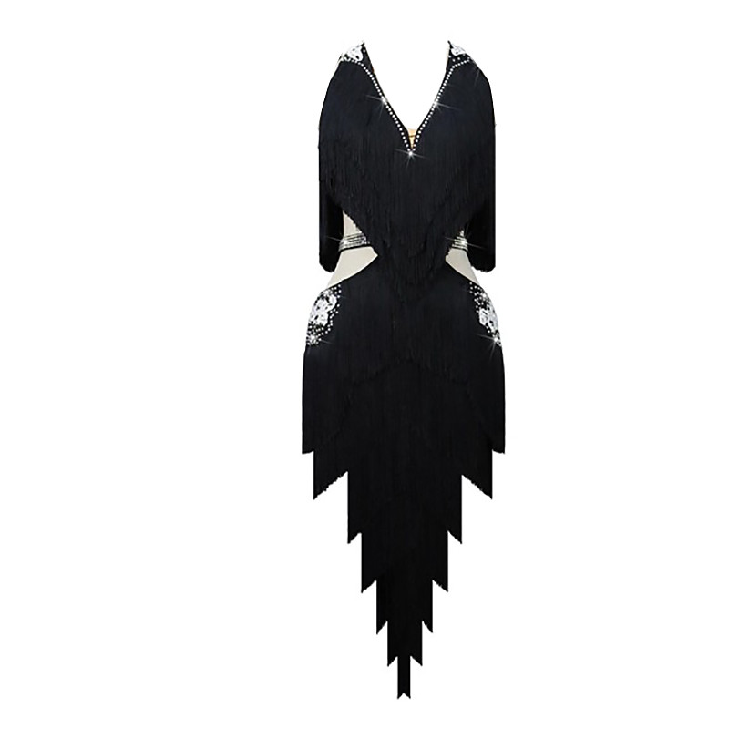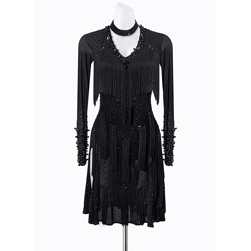 Latin Dance Dress Tassel Crystals / Rhinestones Women's Performance Training Long Sleeve Competition Salsa Dress
