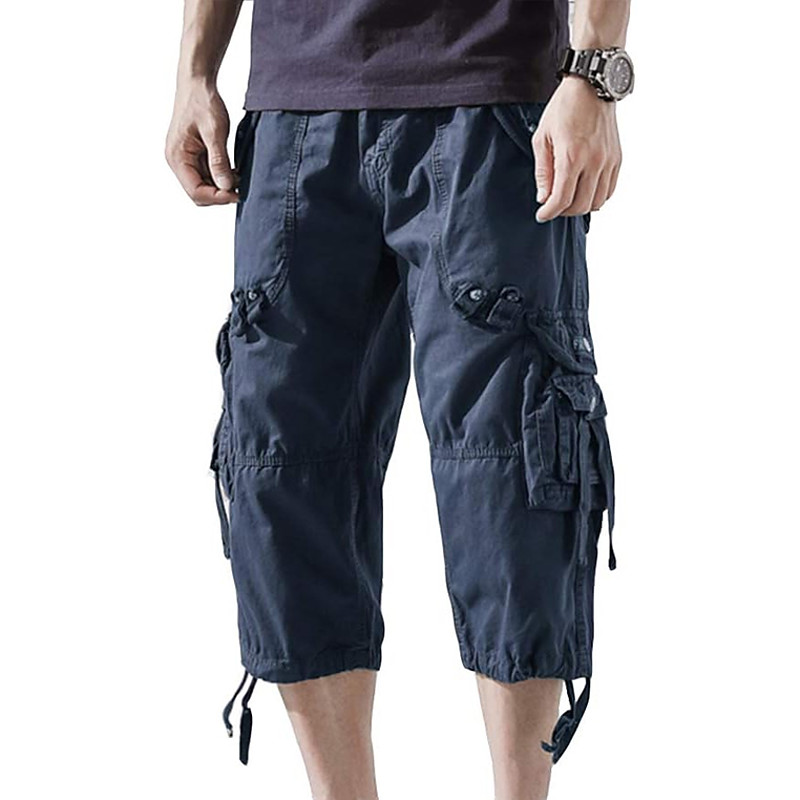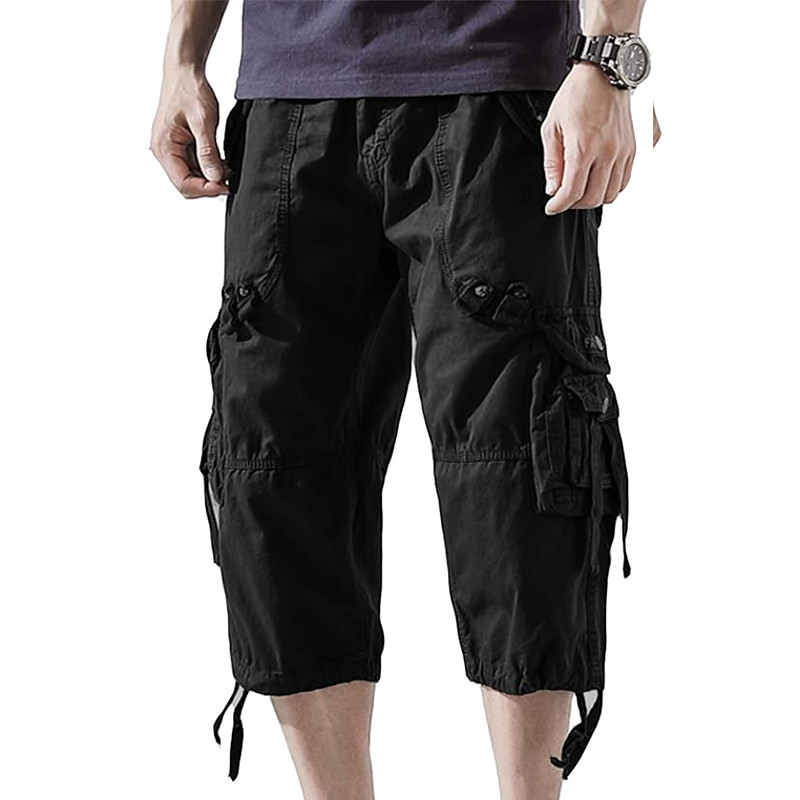 Men's Capri Cargo Shorts Cargo Shorts Shorts Capri Pants Hiking Shorts Leg Drawstring 6 Pocket Plain Comfort Outdoor Daily Going out Fashion Streetwear Black Army Green