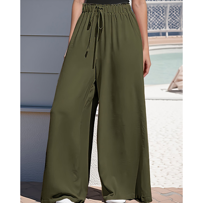 Women's EU / US Size Wide Leg Pants Trousers Comfort Casual / Sporty Full Length Mid Rise Solid Colored Drawstring Pocket Wide Leg Soft Comfortable Micro-elastic Athleisure Casual Daily Black 1# Army