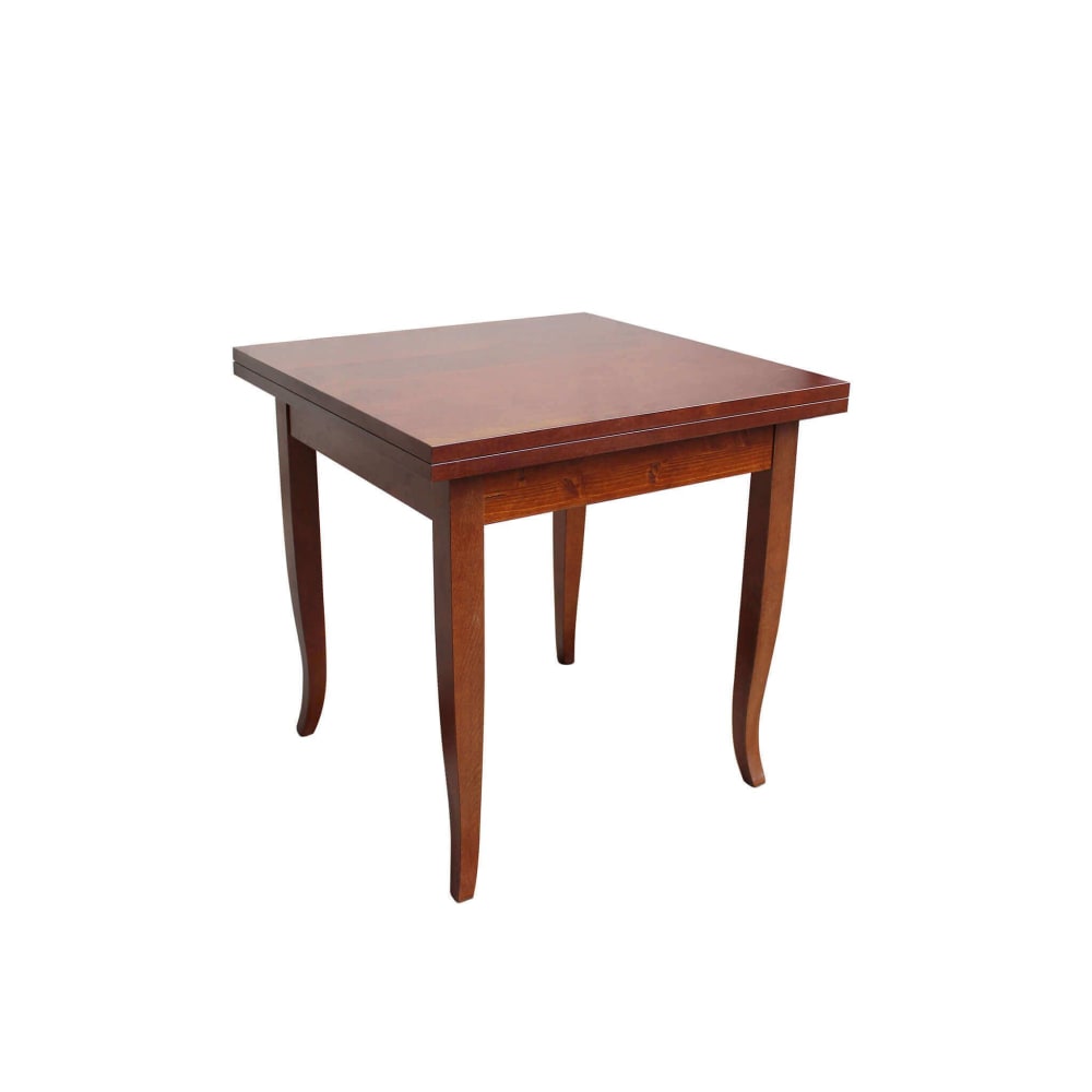 Tavolo allungabile apribile a libro in legno tinta noce 80x80x75